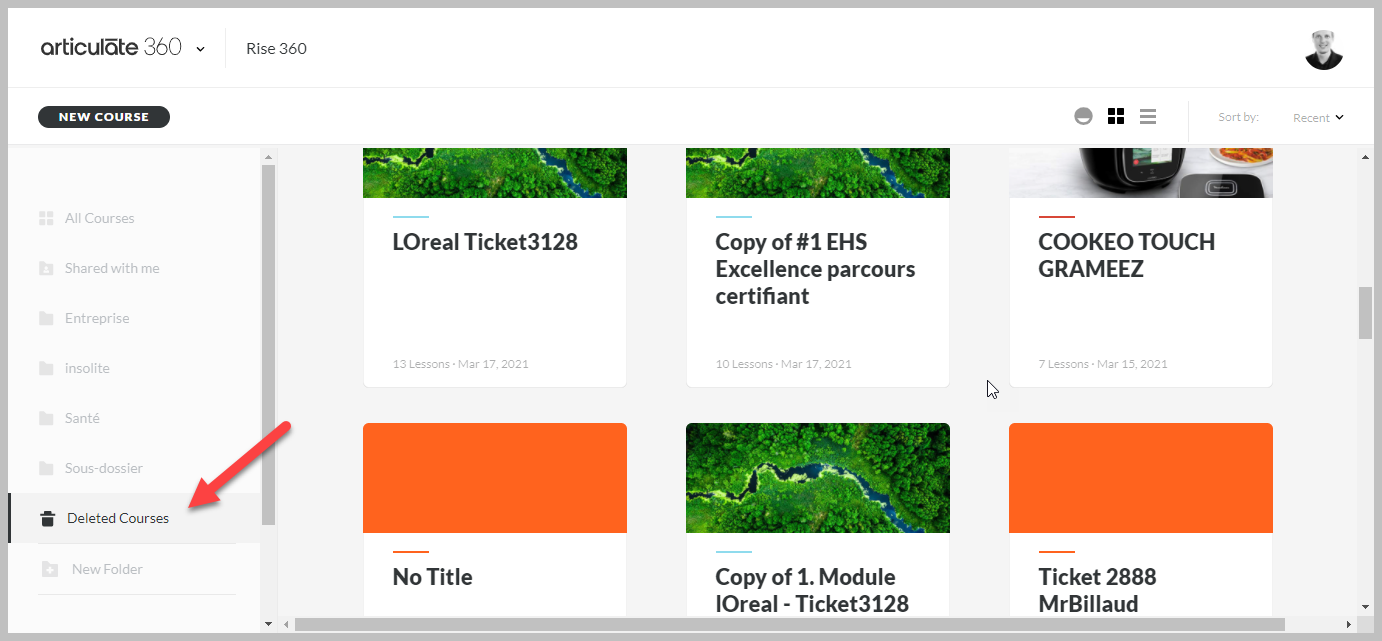 Et il apparaît également dans votre dossier "Cours supprimés" :